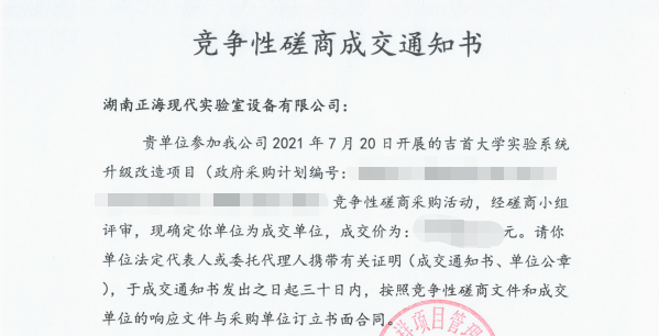 近日,湖南正海現(xiàn)代實驗室設(shè)備有限公司傳來喜訊,成功中標吉首大學實驗室系統(tǒng)升級改造項目。